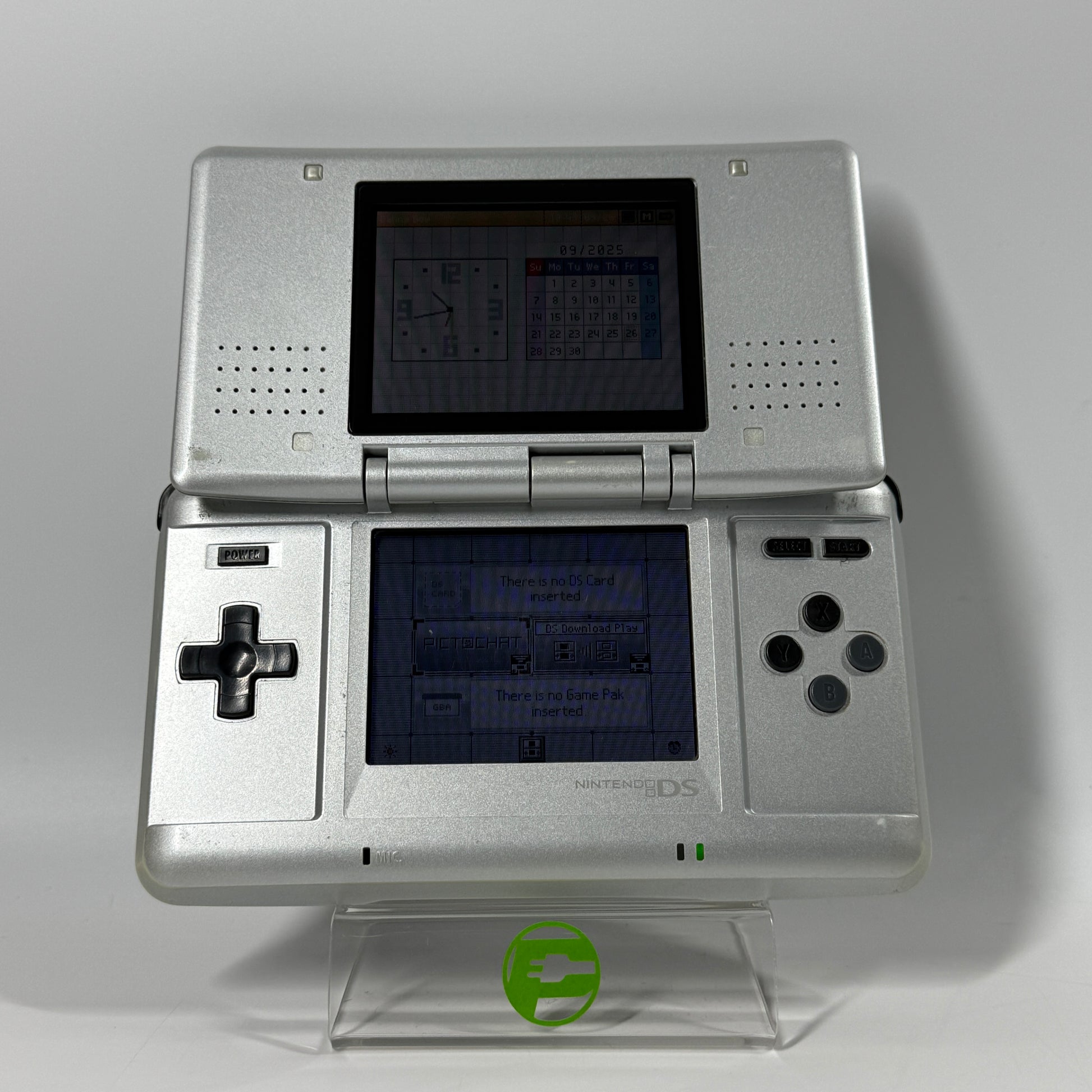 The top LCD is damaged, showing burn-in and discoloration. The bottom LCD is damaged, showing burn-in and discoloration. The buttons have been tested and are fully functional with no issues. This system does not have joysticks and you interact with the D-Pad. We tested the consoles with multiple games and runs perfectly. The system's battery charges and holds a charge well. The speaker(s) work well with no issues. The sound is clear and loud. The microphone is clear and responsive.