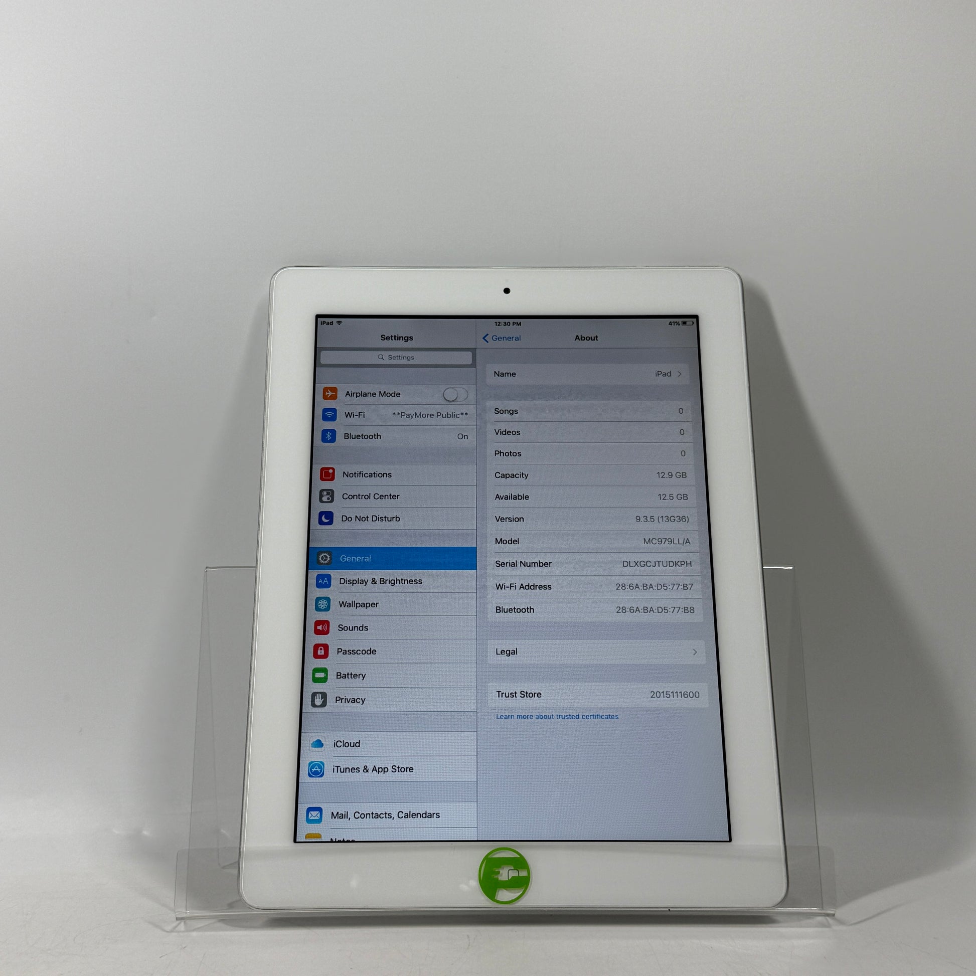 The power button and volume buttons are all fully functional with no issues. Both the front and rear camera are fully functional with no glare or imperfections. The LCD is clear with no issues or damage. The digitizer (touch screen) responds well to touch. The WiFi capabilities are fully functional and have no issues connecting to available WiFi connections. The Bluetooth capability is available and has no issues. The speakers are loud and clear. The True Tone function is available and works properly.